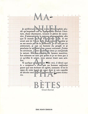 Après Pense•bête, livre de photographies paru en 2010 chez Éric Pesty Éditeur, qui couvrait la production artistique de Vincent Bonnet sur les années 1995 – 2010, paraît Manuel pour les alphabètes en février 2026.