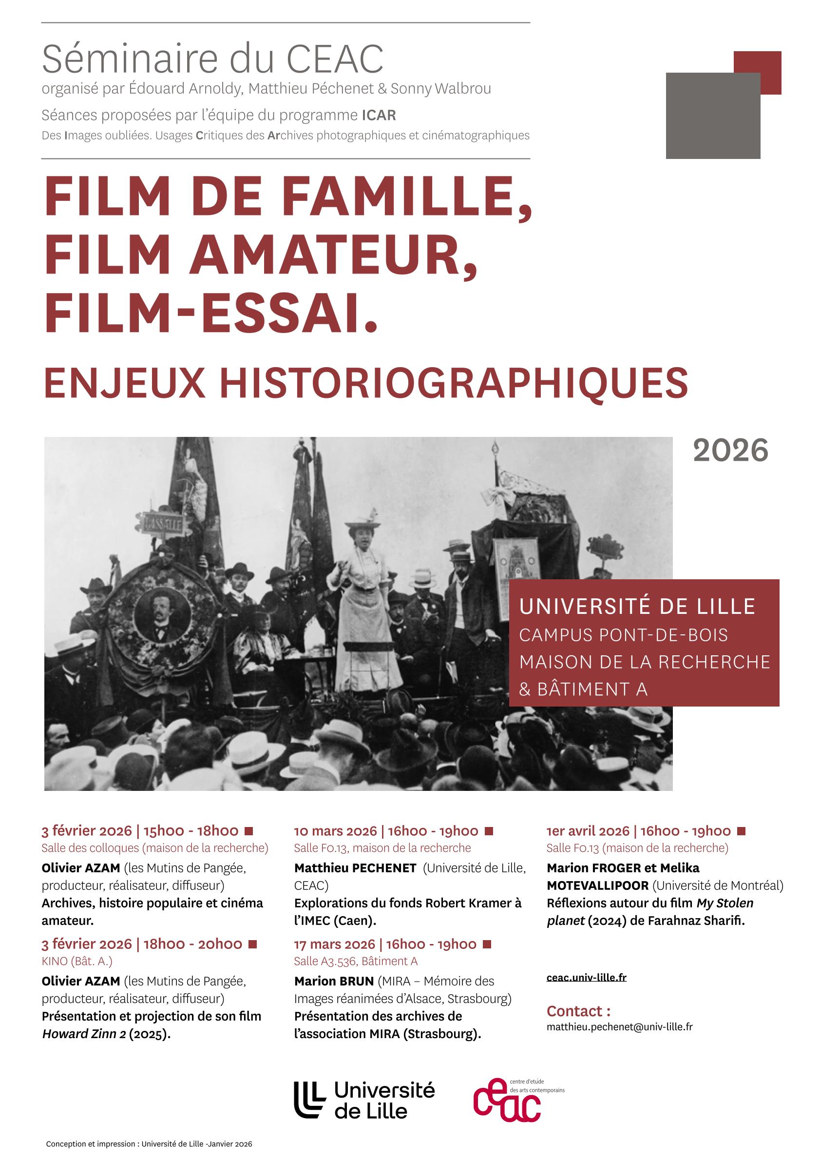 FILM DE FAMILLE, FILM AMATEUR, FILM-ESSAI. ENJEUX HISTORIOGRAPHIQUES / Marion BRUN (MIRA - Mémoire des Images réanimées d'Alsace, Strasbourg)