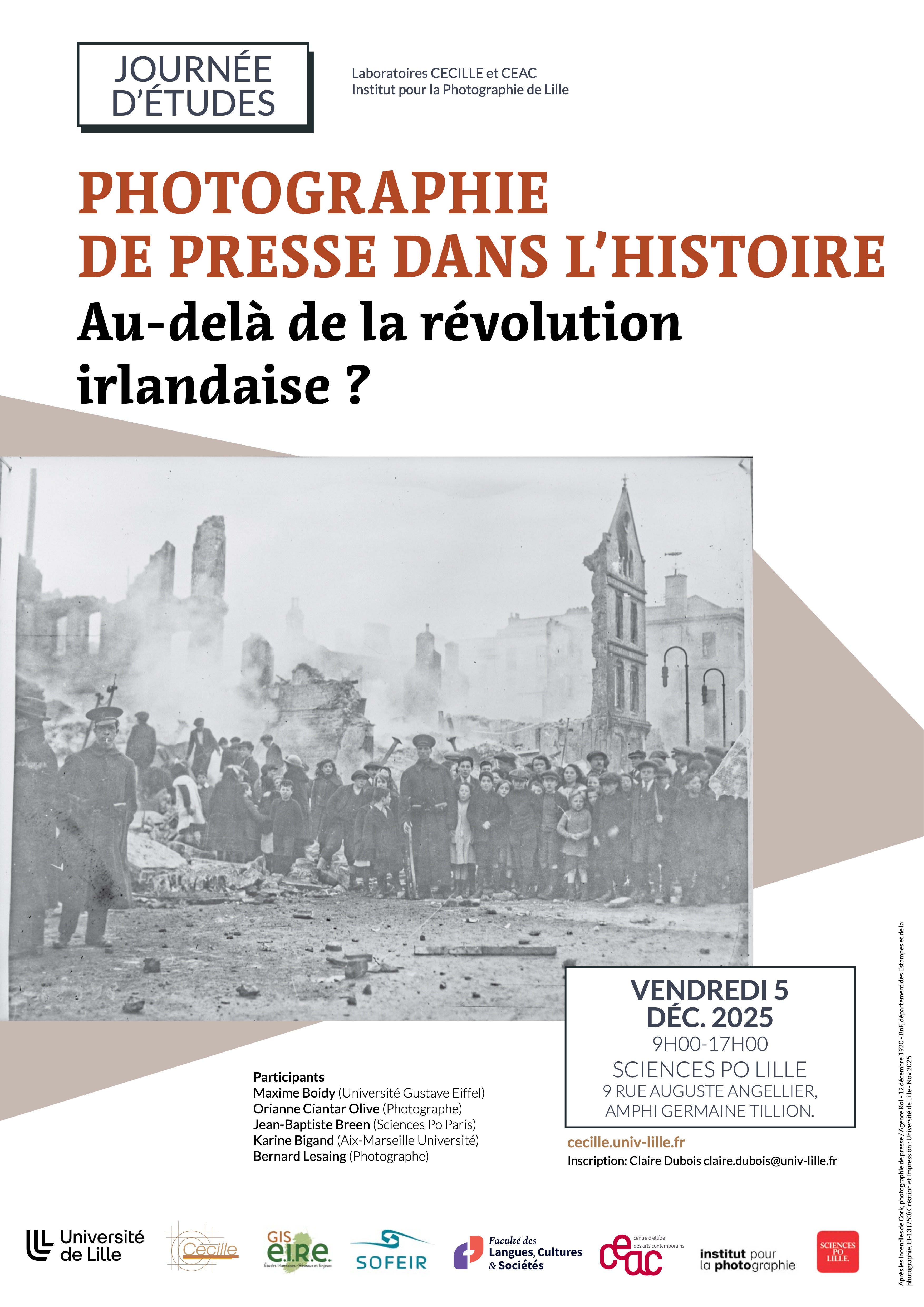 Organisation: Claire Dubois (CECILLE - Université de Lille), Nathalie Delbard (CEAC- Université de Lille), Emilie Goudal (CEAC- Université de Lille) et Alice Rougeulle (Institut pour la Photographie de Lille).
